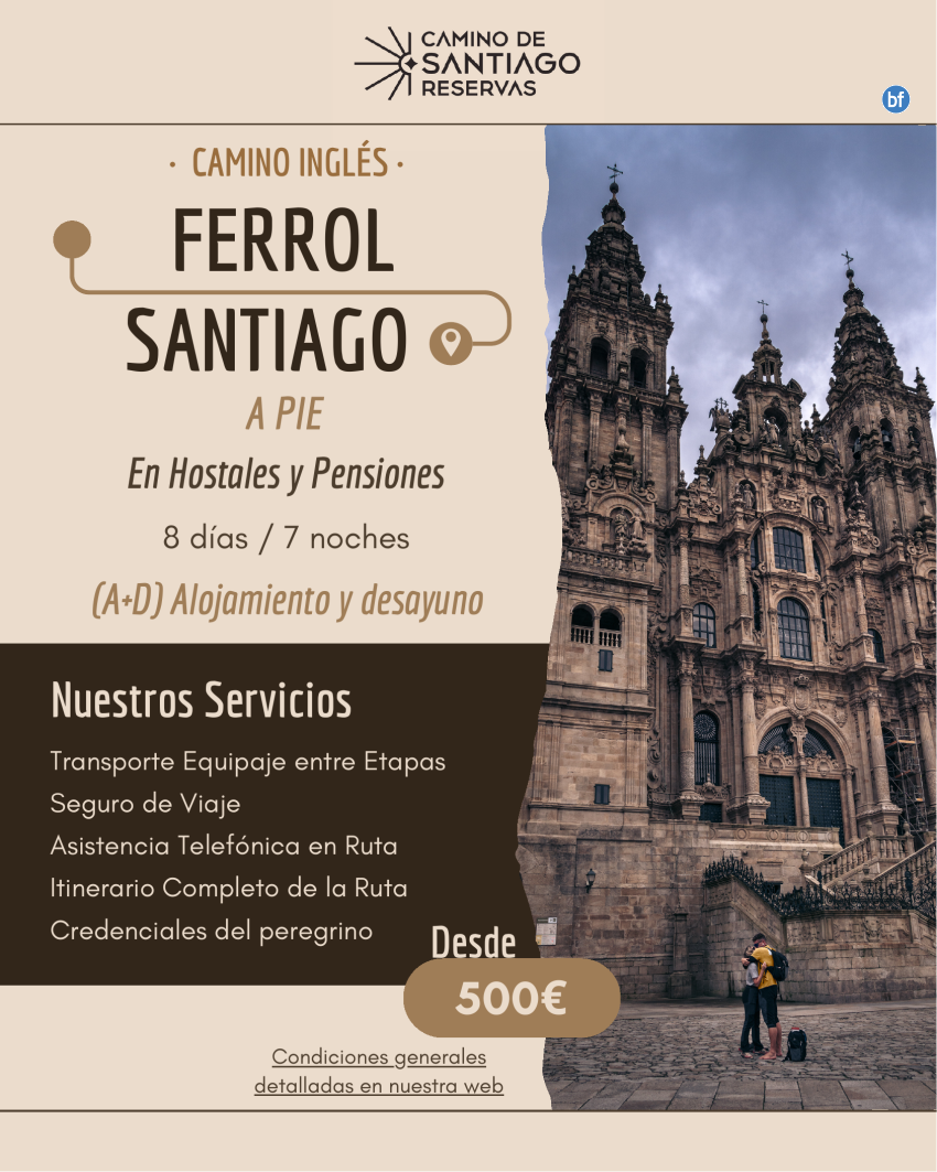 Ferrol - Santiago de Compostela a Pie. Camino Inglés. 8 Días / 7 Noches. Hostales / Pensiones. 500€