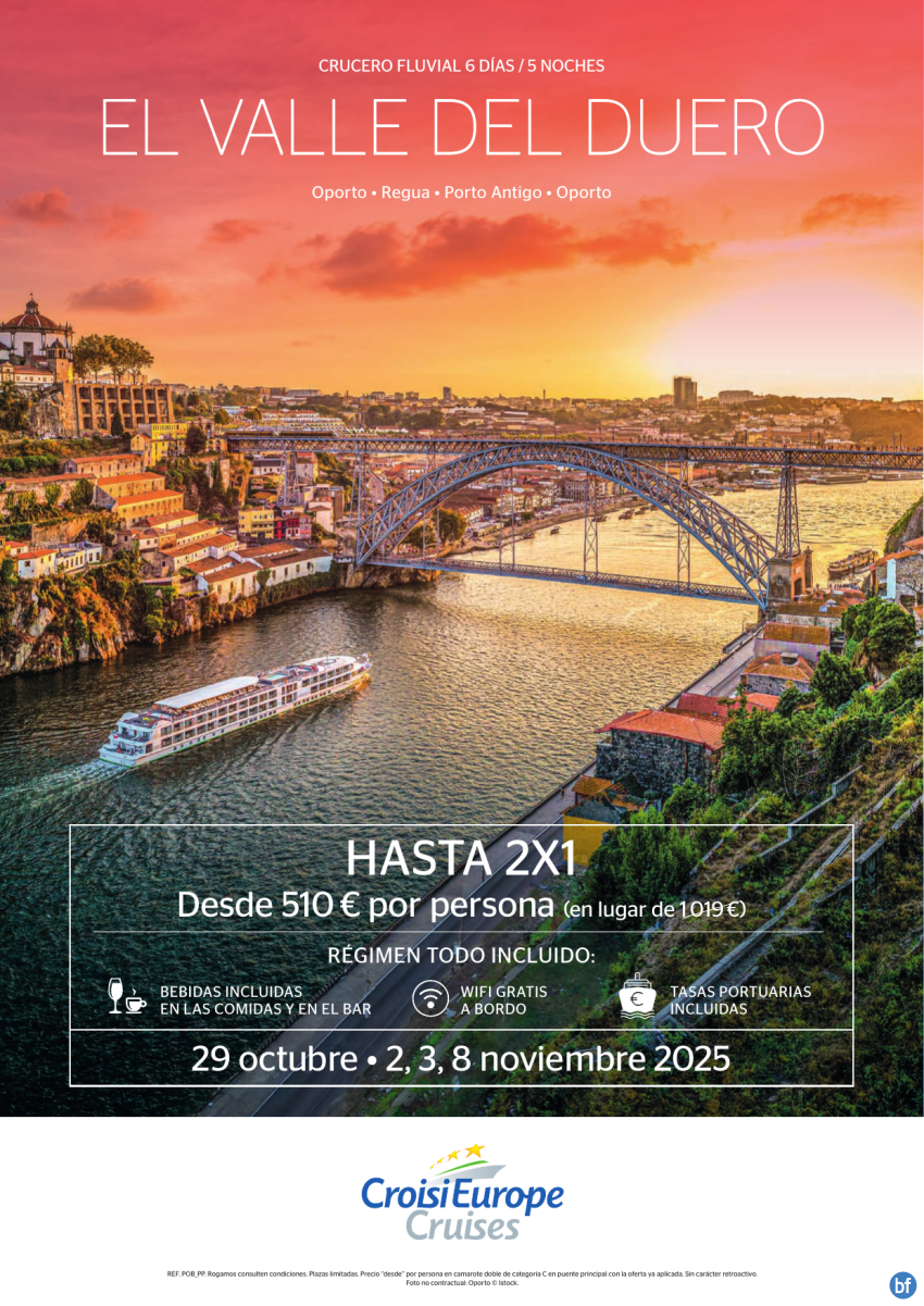 HASTA 2x1 - crucero fluvial por el Valle del Duero - 6 días - Todo Incluido - 29/10 + 02/11 + 03/11 + 08/11